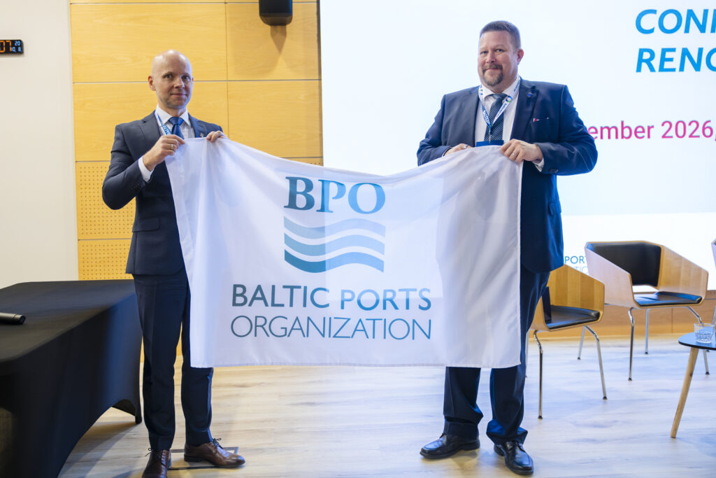 Alan Aleksandrowicz, Vice-President of the Management Board for Finance and Security at the Port of Gdańsk Authority as the representative of this year’s BPC host, handed over the symbolic BPO flag to Antti Pekanheimo, Chief Operating Officer at the Port of Turku Ltd, the representative of next year’s BPC host.